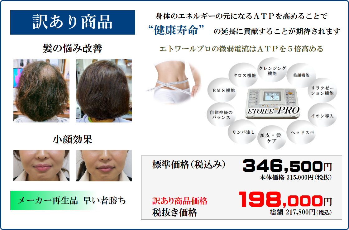 この度、メーカー再生品のエトワール・プロを特別価格でご提供いたいます。
