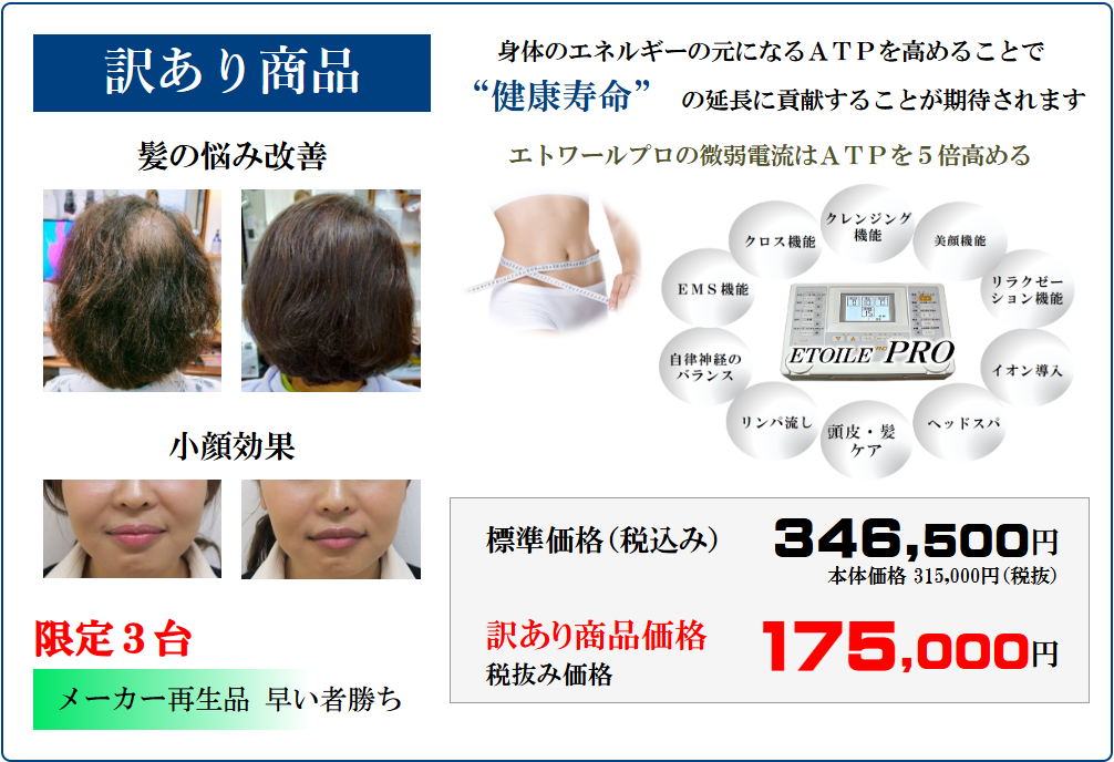 - エトワール・プロのメーカー再生品を販売中。詳しくはアウトレットのバナーをクリックしてください。